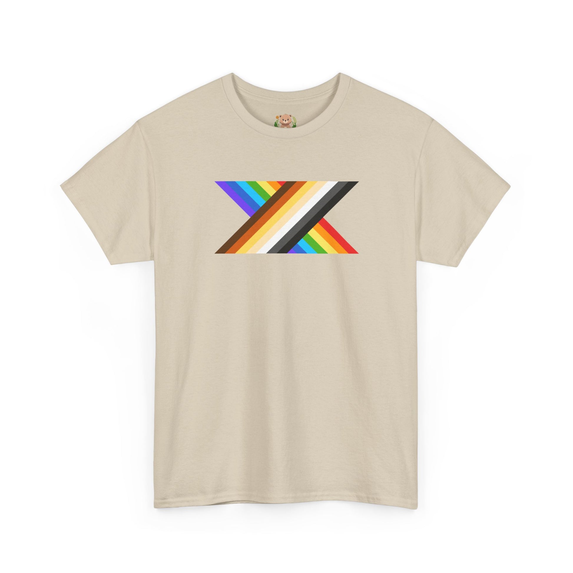 This design blends vibrant rainbow stripes with warm bear-flag colors, creating a bold and expressive pattern that celebrates pride, identity, and unity. The mix of both flags symbolizes inclusivity and connection within the community, offering a meaningful yet stylish piece that stands out with its colorful, confident energy.